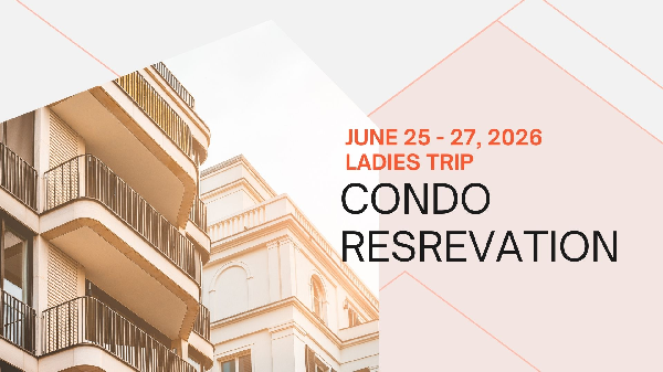 We have rented a condo for 8 ladies. RESERVE your spot today by paying your $40 deposit. (If you pay online, there will be $1.50 service fee added.) The $50 balance needs to be paid by June 1, 2026.